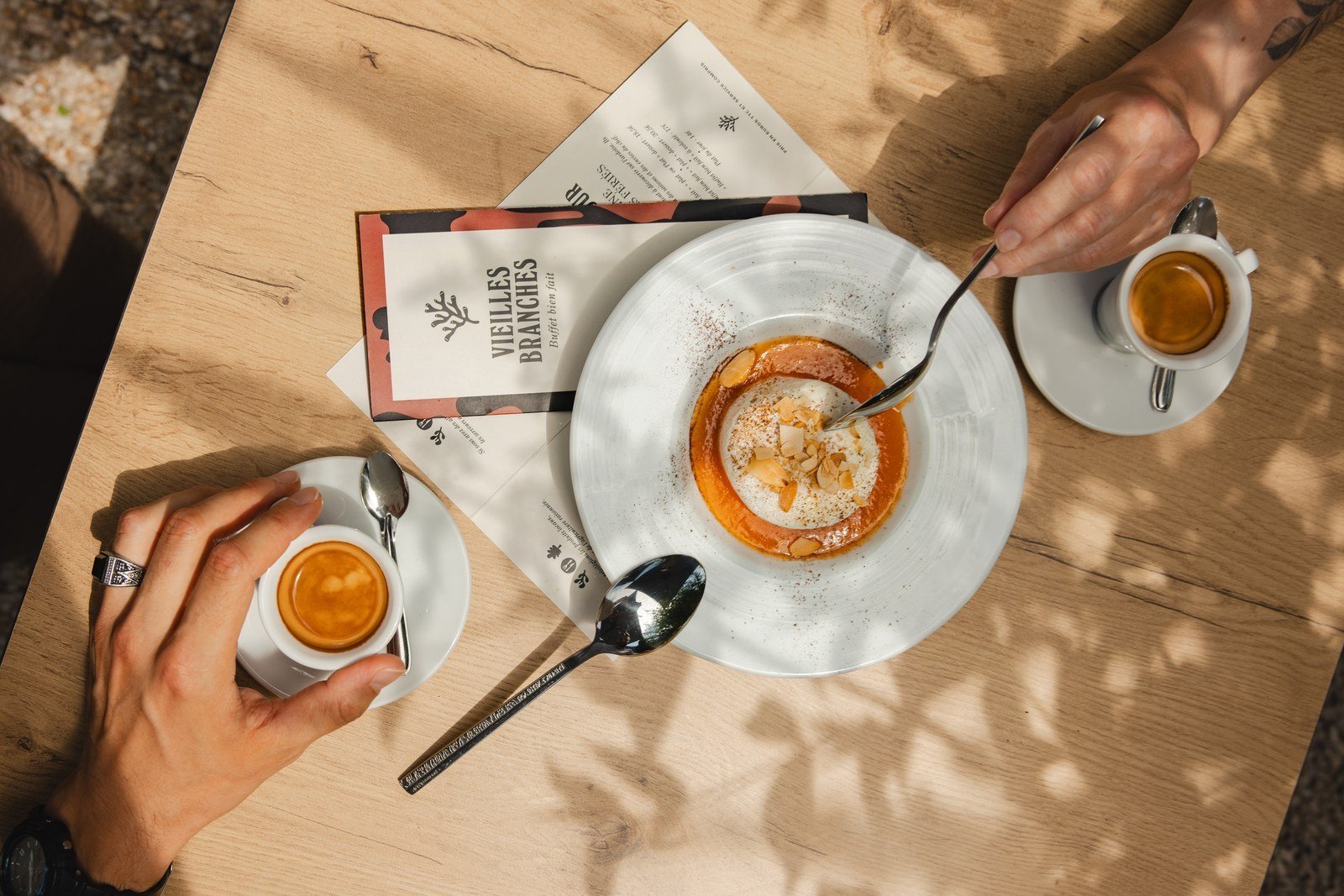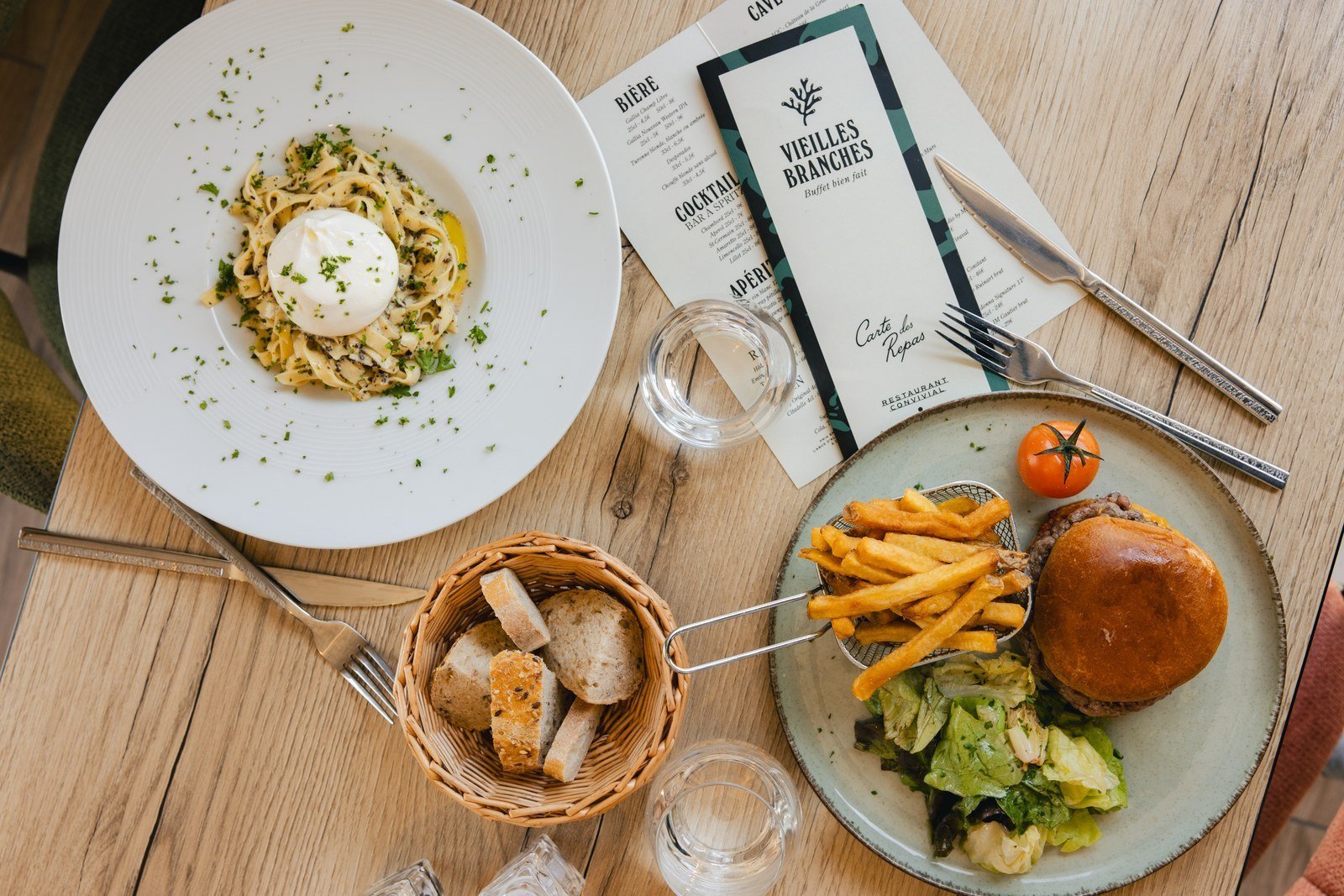 Chaque midi et soir, on vous accueille aux Vieilles Branches : une cuisine rustique et un buffet bien fait.