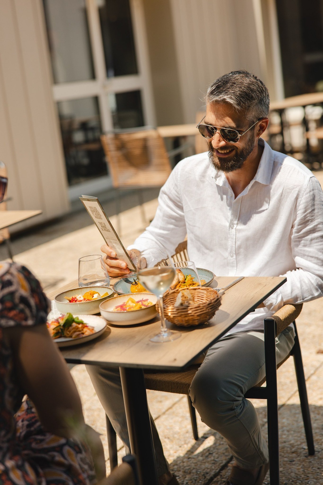 Midi et soir, on vous accueille autour d’un buffet d’entrées frais et varié, suivi d’une carte courte qui change au gré des saisons. Chaque jour, un plat du jour cuisiné avec des produits de saison.