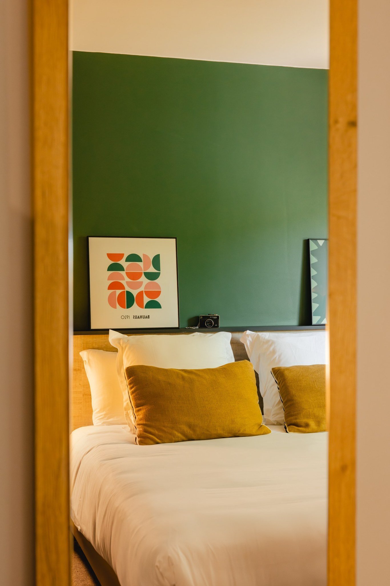 Idéale pour les séjours prolongés ou les voyageurs qui aiment s’étendre, la chambre Confort vous accueille avec un grand lit et un espace bureau.Parfaite pour les séjours prolongés ou pour ceux qui aiment s’étendre sans compter, la Chambre Confort offre un grand lit douillet, davantage d’espace pour circuler, et un coin bureau pour travailler… ou simplement écrire quelques cartes postales.
